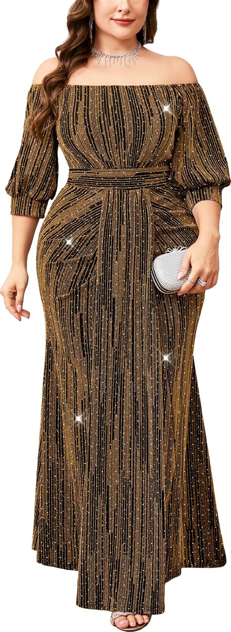 TIARALY Plus Size Sparkly Formal Dress Off Shoulder Puff Sleeve Mermaid Maxi Dresses Cocktail Wedding Party Evening Gown
