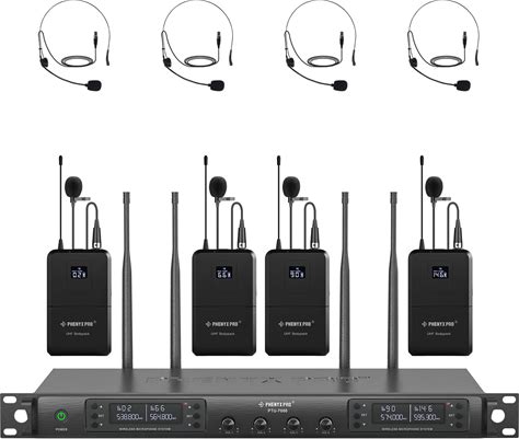 Phenyx Pro 4-Channel Wireless Microphone System, UHF Auto Scan Cordless Mic Set, 4 Bodypacks W/Headsets/Lapel Mics, 4X40 Frequencies, 328ft Coverage,