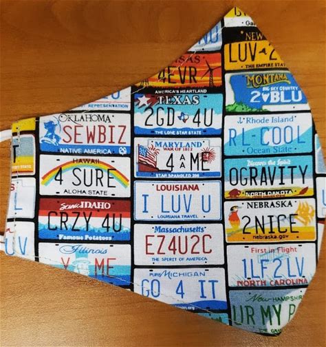 License Plate Face Mask With Nose Wire | Elastic With Adjustable Ear Loop | Washable | Reversible| ADULTS Facemask | 2 Layers