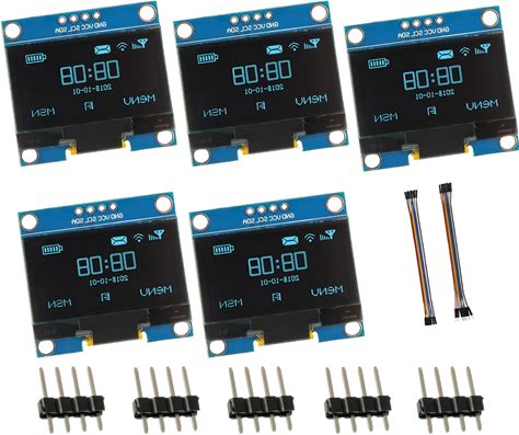 EPLZON 5 Pack 1.3 Inch OLED IIC Display Module 128X64 Pixel Mini Self-Luminous Display Screen Board For Arduino Projects Raspberry Pi With Wire(Blue)
