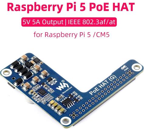 Waveshare Raspberry Pi5 Poe HAT Power Over Ethernet HAT (G) Supports 802.3Af/At Network Standard For