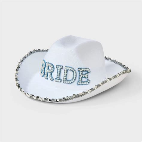 ""Bride" Pearl Rhinestone Cowboy Hat - White/Blue"
