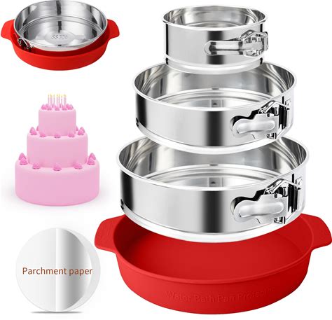 4, 7, 9 Inches Springform Pan Set Of 3 - 304 Stainless Steel Nonstick Springform Cake Pan Set With Removable Bottom, 10 Inch Leakproof Silicone