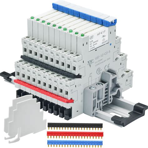 10Pcs 5 Volt Relay Miniature Power Relay 5V DC 6Amp SPDT With LED Indicator Socket Base 41F-1Z-C2 With Jumper Separator Socket Base DIN Rail UL
