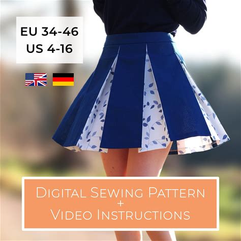 Pleated Mini Skirt Sewing Pattern (PDF Patterns + Video Tutorial): Sizes XXS-3XL