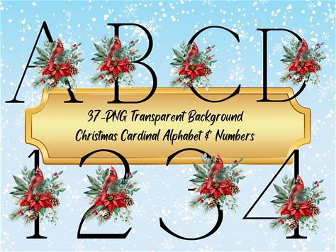 Christmas Cardinal Alphabet & Numbers Clipart - PNG Letter Set (Digital Download)