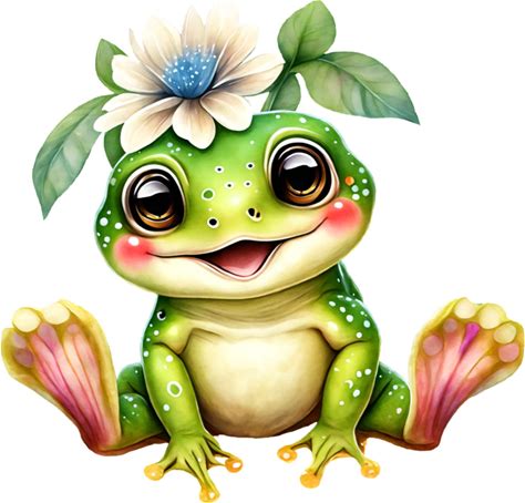 Cute Cartoon Frog, Transparent PNG, Card Making, Scrapbooking, Junk Journal, Stickers, Watercolor Art, Digital Printable