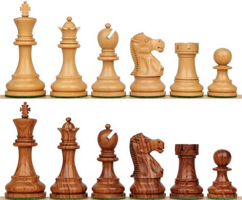 New Exclusive Staunton Chess Set Golden Rosewood & Boxwood Pieces - 3.5" King