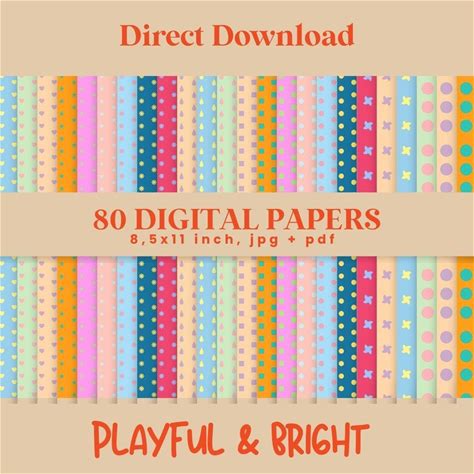 Playful Bright Digital Paper Pack | 80 Colorful Papers, 8 Designs × 10 Colors | Junk Journal Scrapbook Paper | 8.5X11", 300 DPI, JPG & PDF