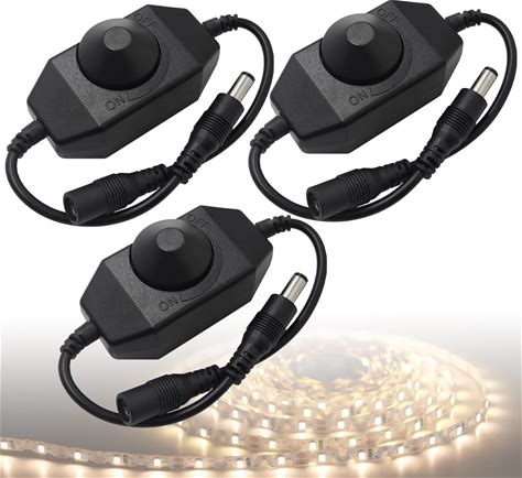 Hayeastdor 3PCS LED Strip Light Dimmer Switch Cable DC12V-24V LED Tape PWM Rotary Dimmer Controller For LED String Lights