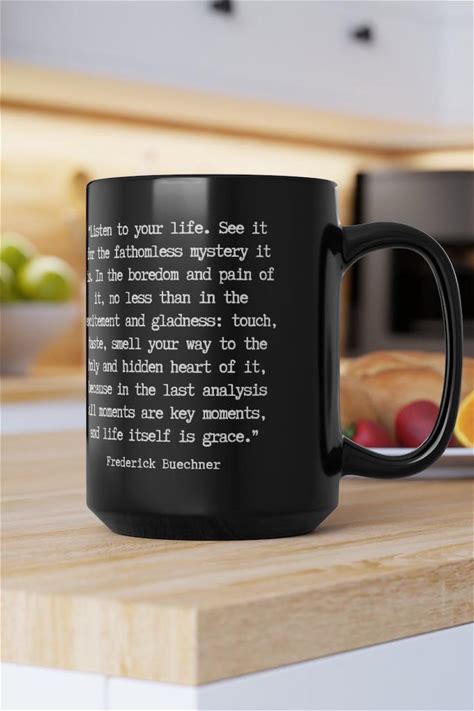 Frederick Buechner Listen To Your Life Black Mug, 15Oz Frederick Buechner Gift For Pastor Gift Frederick Buechner Cup Discernment Gift