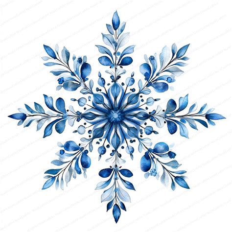 20 Starry Blue Snowflake Clipart | Intricate Winter Decoration Design | Printable Watercolor Clipart | High Quality Jpgs | Paper Craft