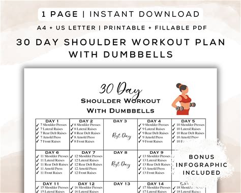30 Day Shoulder Workout Plan With Dumbbells (Printable + Interactive PDF, A4/Letter)