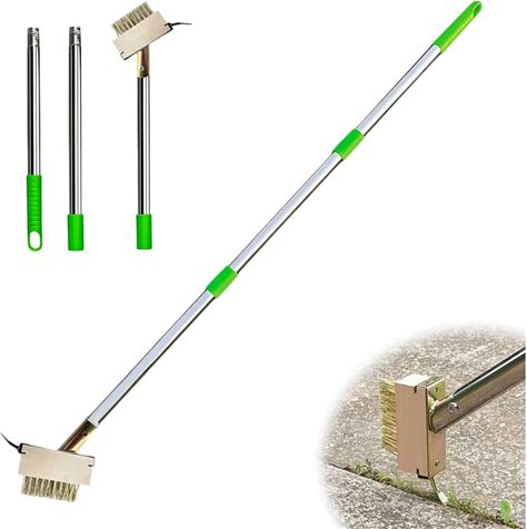 Stainless Steel Crack Weeding Tool With Adjustable Handle Manual Crevice Weeding Tool Green-Handled Metal Weeder For Driveways, Patios, And Garden Pat