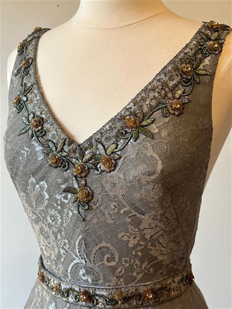 Metallic Lace Gown: Old Hollywood Glamour, Chapel Train, Embroidered Metalic Details