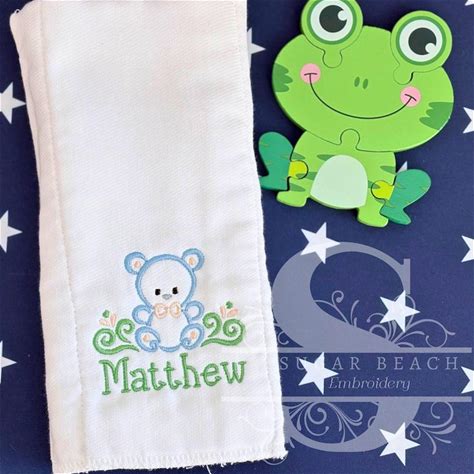 Personalized Baby Burp Cloth Bear Design | Custom Embroidered Name | Boy Newborn Gift | Baby Shower Gift Set | Cloth Diaper Burp Rag