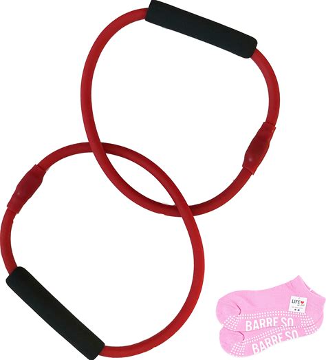 Barre Red Double Tube Exercise Tubing Equipment For Pure Barre Workout & Pair Of Womens Barre Socks: Life By Lexie