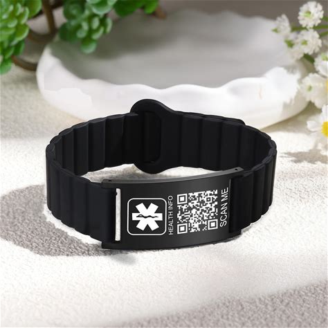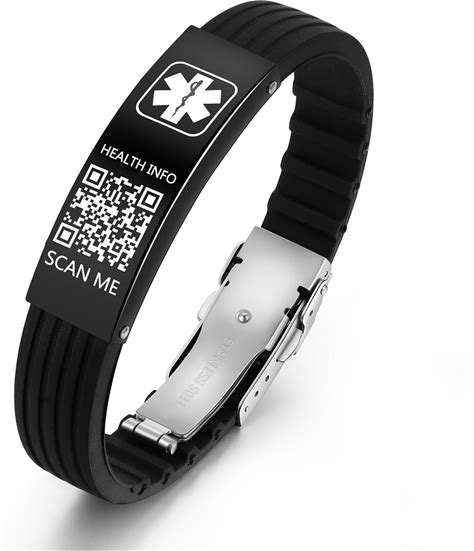 QR Code Medical ID Bracelet for Women Men, Silicone Adjustable