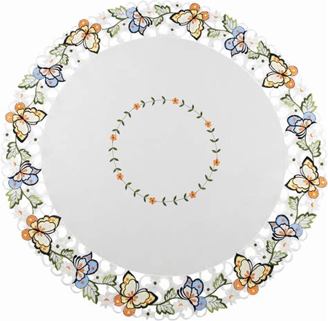 LINENS ART AND THINGS Embroidered Table Topper Colorful Butterfly On Ivory Large Doily Table Centerpiece Runner (33 Inch Round)