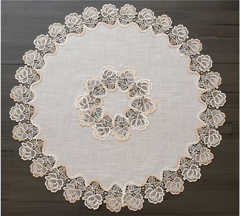 Beige Rose Lace Table Topper, Doily, Table Runner (33 Inch Round)