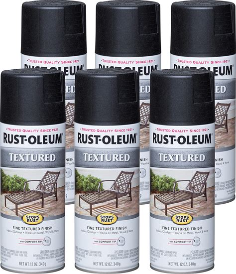 Rust-Oleum 7220830-6PK Stops Rust Textured Spray Paint, 12 Oz, Black, (Pack Of 6)