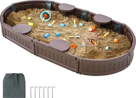 Plum Wooden Large Sandbox With Cover - Outdoor Octagon Sand Box For Kids, Toddler Sensory Toys, Outdoor Wooden Sand Pit With Seat Boards And Bottom