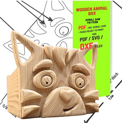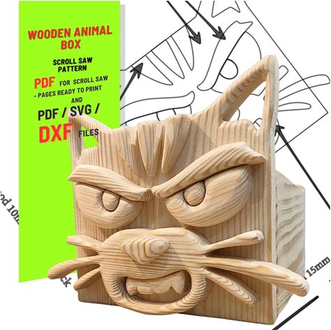 Wooden Animal Box Scroll Saw Pattern (PDF , SVG , DXF) Cat No.1