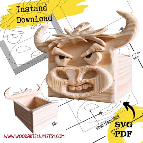 Bull Design Woodworking Box Pattern: Scroll Saw & Laser Cut (SVG, PDF)