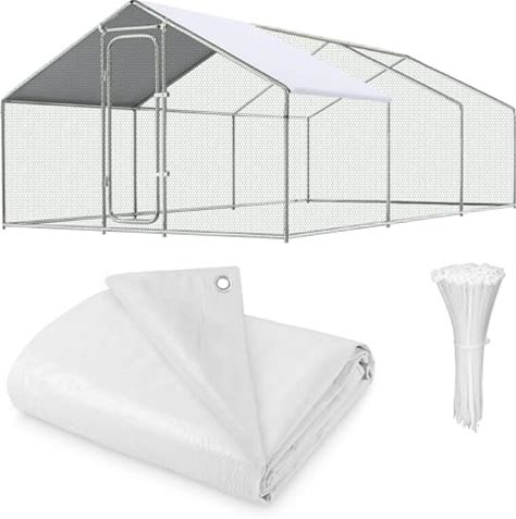 11.1X6.2 ft Chicken Coop Cover Waterproof, White Chicken Coop Tarp, Chick Tent Cover For Shade, Chicken Run Cage For Sun Resistance (1Pack Poultry Cage Tarp)