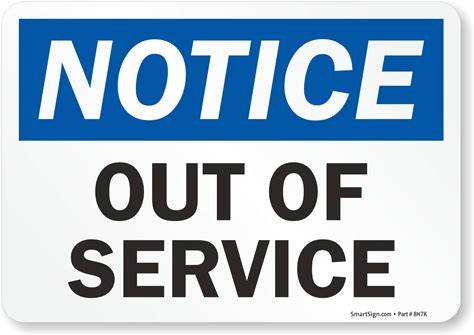 Notice: Out Of Service - Wall Sign