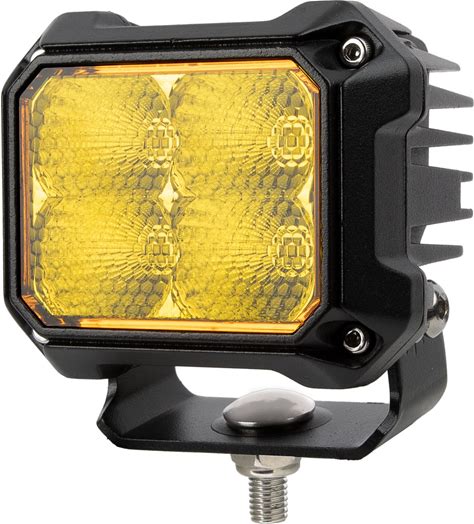 3" Square Yellow LED Pod Light - Amber Backlit - SAE Fog Beam - 20W - 2,000 Lumens - Single