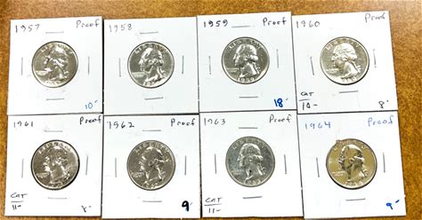 Proof Silver Washington Quarters 1957-1964 8 Different Coins.
