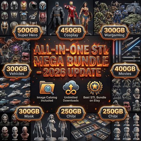 120,000+ STL Models 3D Print Collection, Ultimate 3D Print STL Files | 350,000+ Models, 110TB Verified, D&D, Anime, Cosplay STL Mega Bundle