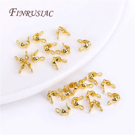 50 X Stainless Steel Crimp Beads Clamshell Bead Tips Calotte Ends, Crimp Ends Gold Plated Knot