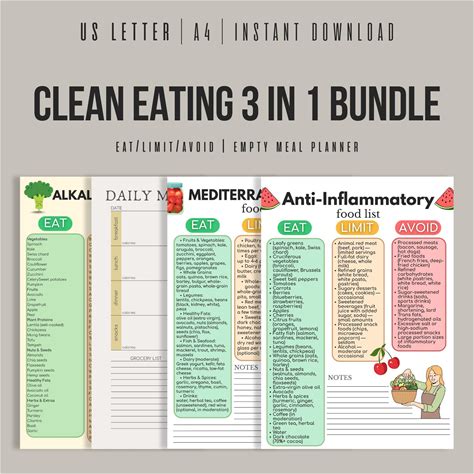 Clean Eating 3 in 1 Bundle, Anti Inflammatory, Mediterranean Diet, Alkaline Diet, Food List Printable, Meal Planner PDF