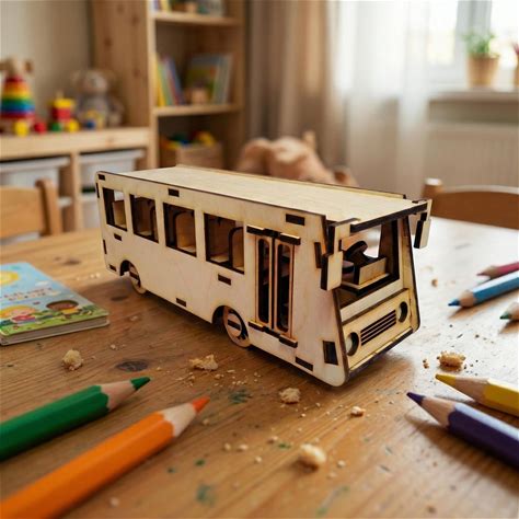 Laser Cut Toy Bus SVG DXF Files | 3D Wooden Vehicle Puzzle | Cnc Vector Plans For Plywood | DIY Minibus Model For Glowforge-Digital Download
