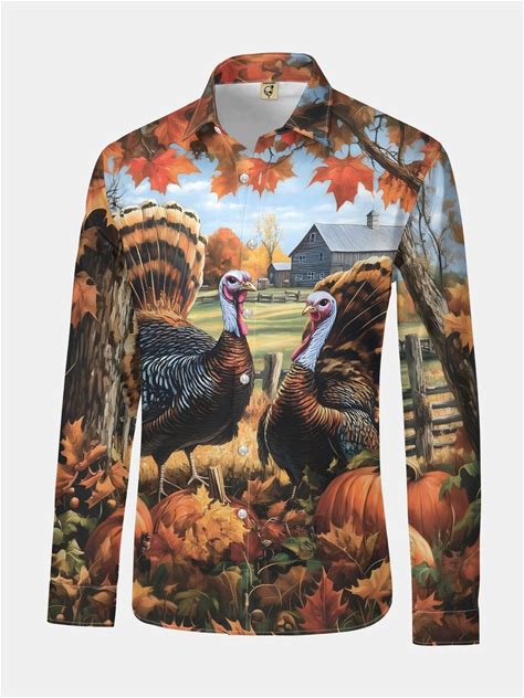 Thanksgiving Gobble Turkey Regular Fit Long Sleeve Holiday Dress Shirt Brown/L