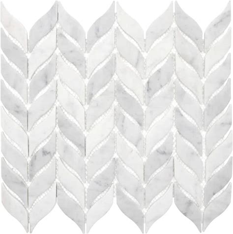 Leaf Waterjet 11 in. X 10 in. White Calacatta Recycled Glass Marble Looks Floor And Wall Mosaic Tile (8.4 Sq. Ft./Case)