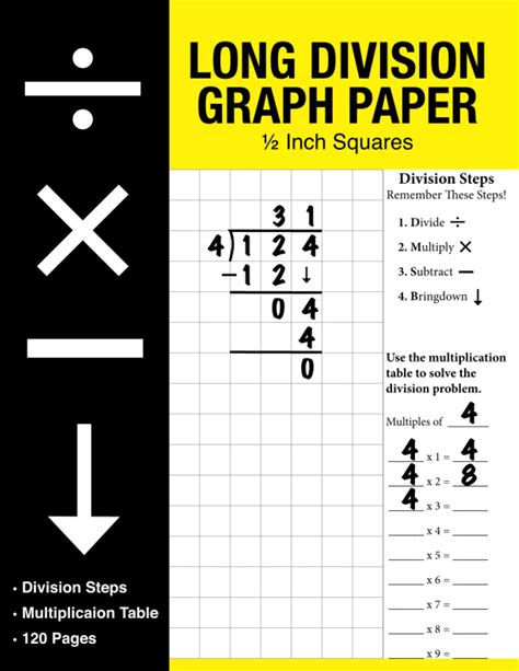 Long Division Graph Paper: 1/2 Inch Squares Math Composition Notebook For Students-8.5X11 With Division Steps And Multiplication Table