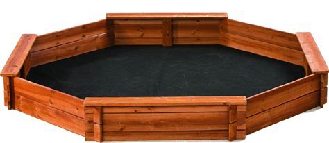 Octagon Wooden Cedar Sand Box W Seat Boards | Eco-Friendly Cover & Ground Liner | 84" X 78" X 9" | 3/4" Boards | Easy DIY Assembly | Holds 800+ Lbs Of