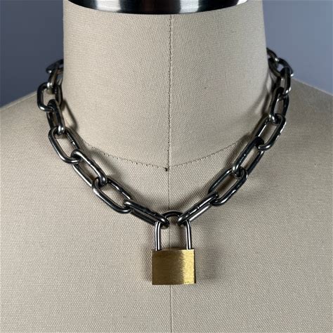 Padlock Necklace Choker Silver & Gold Padlock - Mens Necklace Chain 18" Choker Chain For Men, Mens Choker Necklace - By Twistedpendant