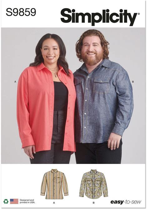 Plus Size Unisex Shirts - Easy Simplicity Sewing Pattern S9859