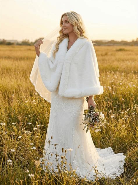 Ivory Or White Faux Fur Bridal Wedding Shawl Jacket Cape Wrap Winter Party Wedding Shawls Wraps Shrug Bolero Women