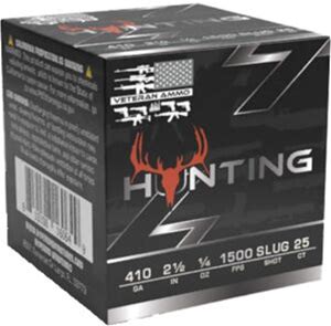 Veteran Ammo Hunting .410 Gauge 2 1/2 in 1/4 Oz Shotgun Rifled Slug Ammo, 25 Rounds, VETSS-410G-SLUG