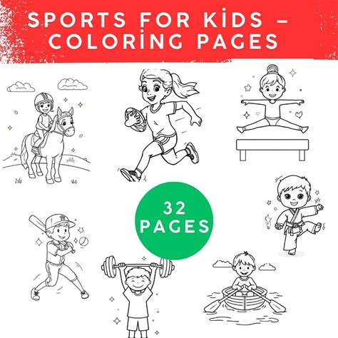 Kids Sports Coloring Book, Fun Activity Pages (32 Pages, PDF)