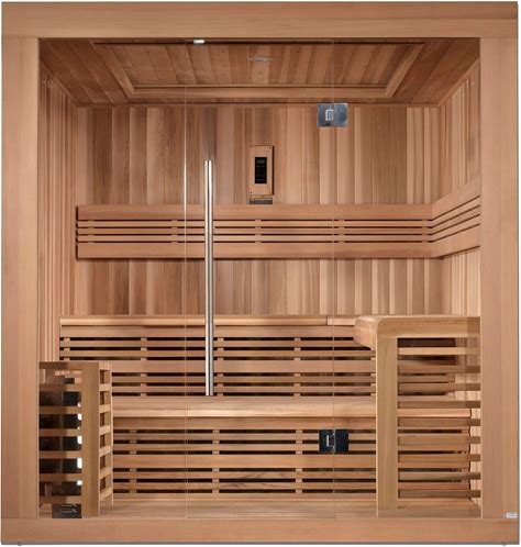 Indoor Cabin Sauna Kit 59"D X 71"W (Up To 3 People) | Premium Alder Traditional Electric Home Sauna | Auroom Libera Glass Cabin Sauna Kit | Door Hinged On Right