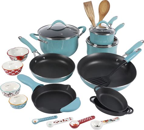 The Pioneer Woman Frontier Speckle 24-Piece Aluminum Cookware Combo Set, Turquoise