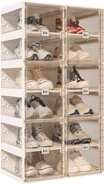Vipbox Portable Shoe Organizer With Clear Magnetic Doors For Entryway, Closet, See Through White Sneaker Box With Lids 6 Layers 12 Grids