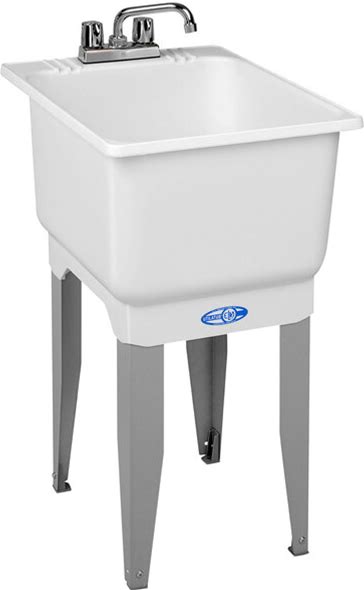 E.L. Mustee 12C UTILITUB 18" Polypropylene Laundry Tub Sink With Steel Legs And Faucet Kit