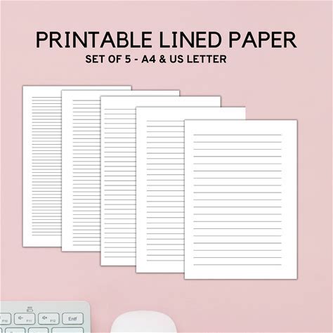 Printable Lined Paper PDF, Lined Sheets Printable, Lined Notes Printable, Writing Paper, Journal Pages, Set Of 5 - PDF - A4 - A5 - LETTER